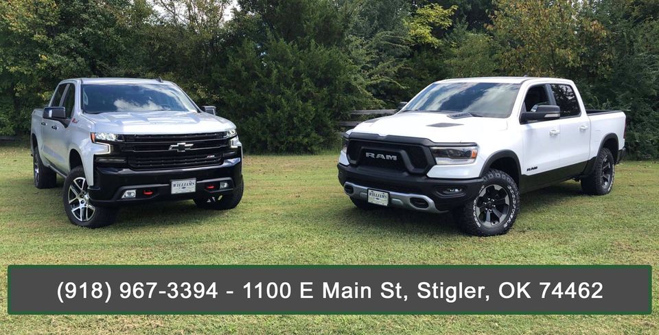 Williams Chevrolet Chrysler Dodge Jeep Ram is a family-owned car dealership located in Stigler, OK. We offer a wide selection of new and pre-owned vehicles and take pride in ensuring our customers go home with the perfect vehicle to fit their needs.